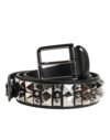 Black Calf Leather Studded Silver Buckle Belt